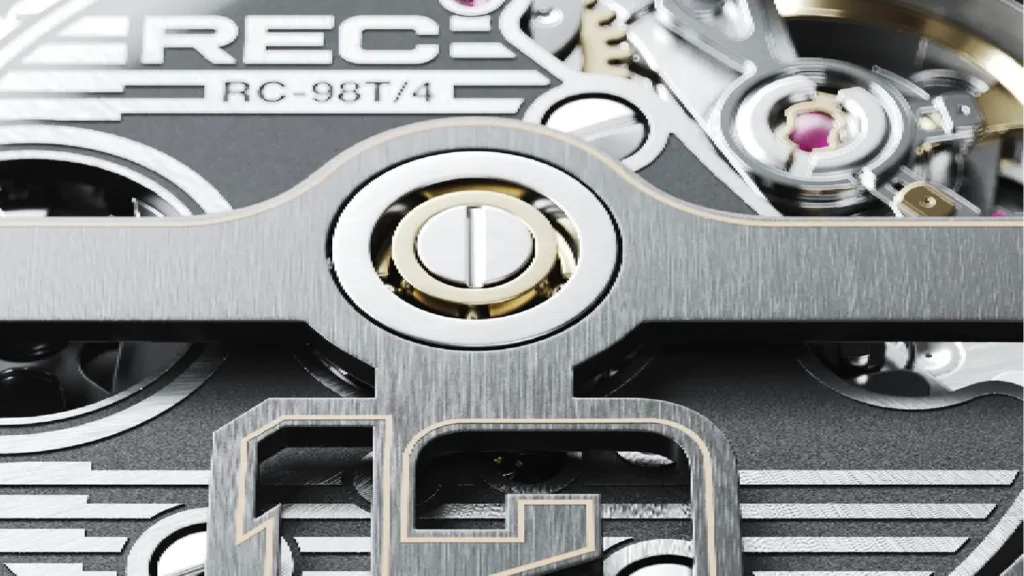 El calibre RC-98T/4 es el primer movimiento interno de la marca, un cronógrafo suizo que ofrece 62 horas de reserva de marcha.