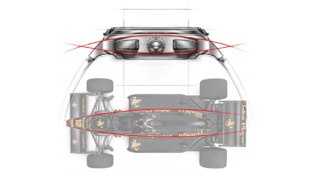 El reloj fue diseñado en conjunto con Classic Team Lotus, quienes les proporcionaron parte del chasis n.° 4 del Lotus 98T de 1986 que pilotó Ayrton Senna y que, además, fue el último coche Lotus F1 en llevar la emblemática decoración negra y dorada.