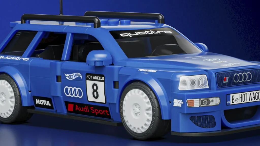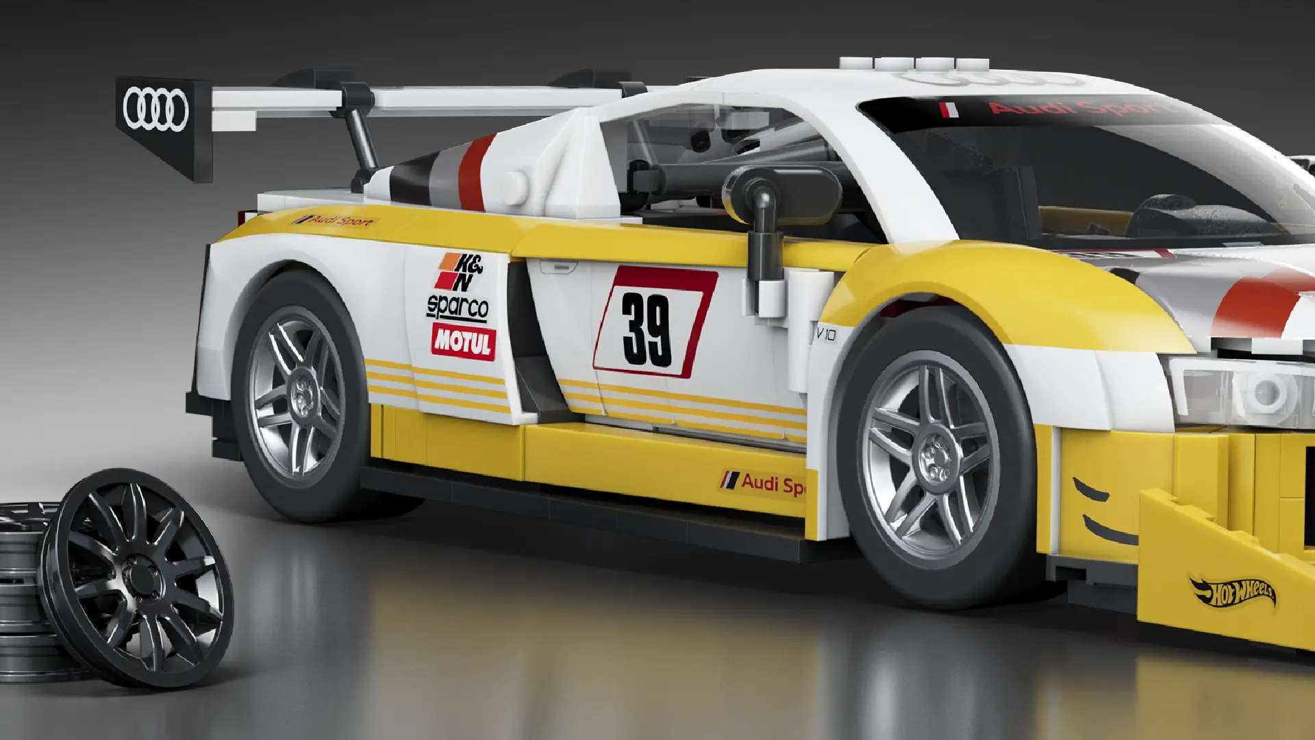 Hot Wheels y Mattel Brick Shop unieron fuerzas para el lanzamiento de sets de construcción inspirados en dos modelos icónicos de la marca alemana: Audi Avant RS2 en escala 1:32 y Audi R8 LMS en escala 1:16.