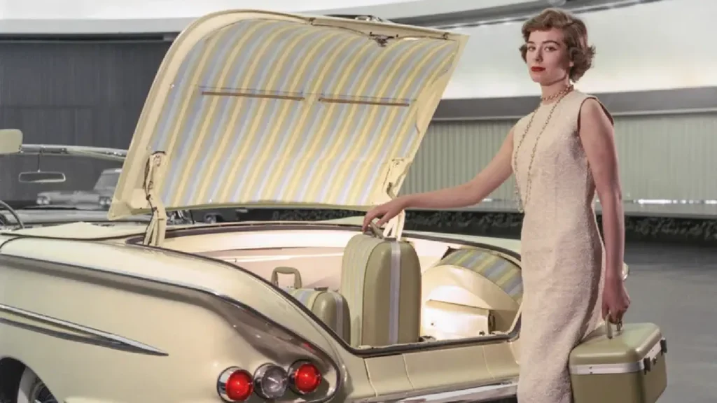 Podemos hablar por ejemplo de Jeanette Linder, quien presentó el Chevrolet Impala Martinique, un descapotable en amarillo nacarado y blanco, con inserciones en la tapicería. En el interior, detalles como espejos de maquillaje iluminados y un tocador montado en la guantera estaban pensados para captar la atención de las consumidoras.