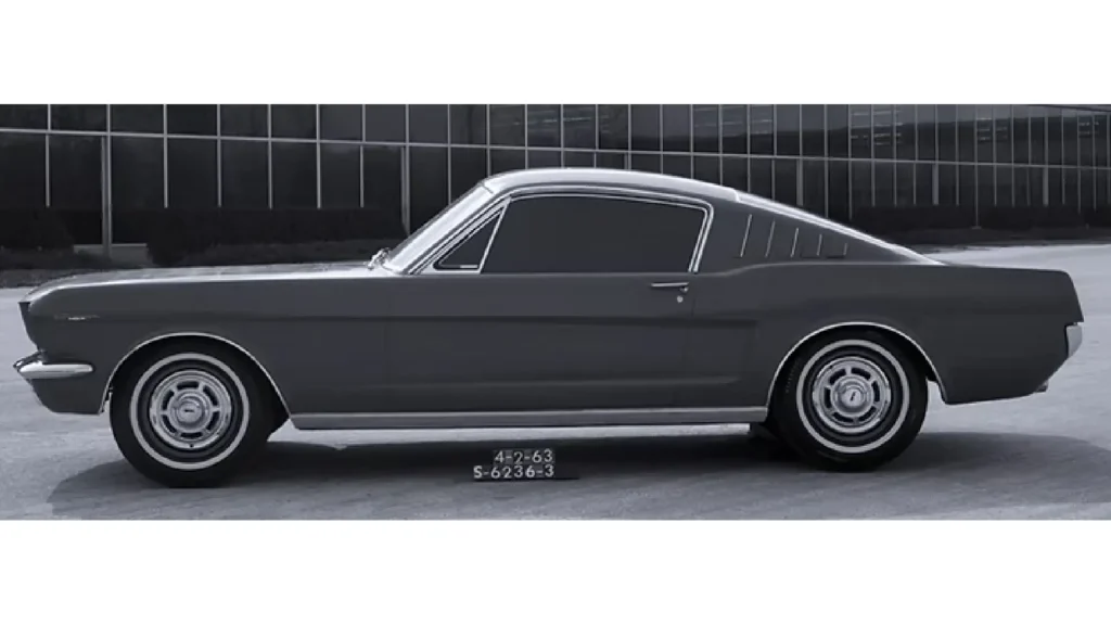 El boceto de arcilla del Mustang fastback de 1963 representó uno de los primeros atisbos de lo que se convertiría en el modelo fastback de producción, capturando prácticamente su forma final más de un año antes de su lanzamiento. Este boceto presentaba una llamativa luneta trasera dividida, similar a la del Corvette Sting Ray cupé de 1963, pero Ford finalmente descartó la idea en favor de una mejor visibilidad. Aun así, el estudio de diseño reveló la intención de Ford de ampliar la gama Mustang con una variante fastback más deportiva que se convertiría en uno de los estilos de carrocería más icónicos del automóvil.
