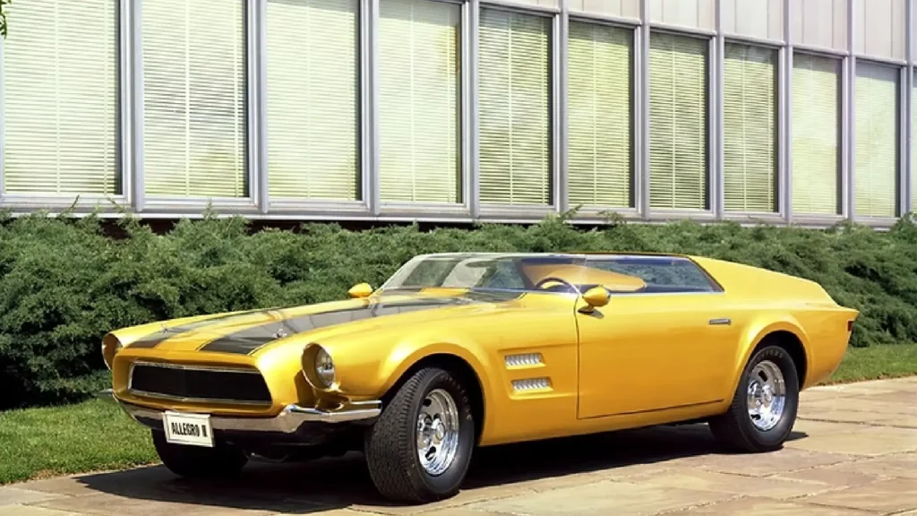 El Ford Allegro Concept de 1962 fue un pequeño deportivo biplaza diseñado por el estudio europeo de Ford en Italia. Presentaba un motor de cuatro cilindros en posición central y una carrocería ligera y compacta, concebida para probar ideas de estilo deportivo para potenciales mercados de exportación. El Allegro tenía un perfil bajo y aerodinámico, con una zaga corta y un cofre largo, lo que enfatizaba una apariencia elegante y orientada al rendimiento. Solo se construyó un prototipo, que nunca llegó a producirse en serie, sirviendo principalmente como estudio de diseño e ingeniería para explorar alternativas al Ford Mustang I y otros modelos deportivos emergentes.