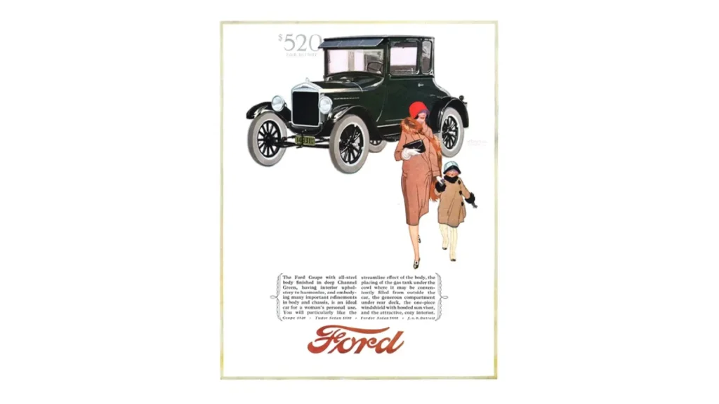 Posteriormente, debido al declive de las ventas del Modelo T, Ford retomó la publicidad. Los anuncios eran con ilustraciones a color que resaltaron la importancia de la compañía y la producción de un automóvil al alcance de todos.