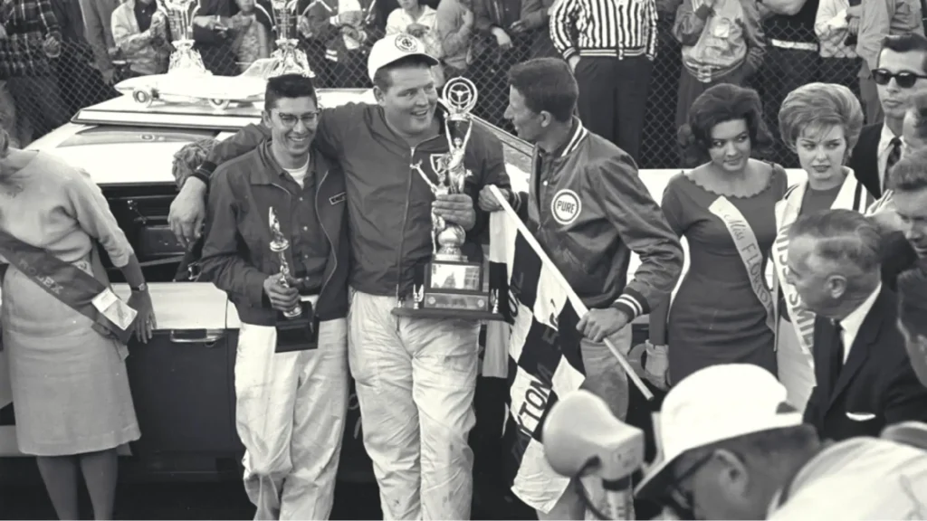 La década de 1960 estuvo llena de victorias emblemáticas para Ford en el automovilismo. La primera llegó en 1963, cuando Tiny Lund, un piloto sustituto, consiguió la primera victoria de la marca en la Daytona 500 de NASCAR.