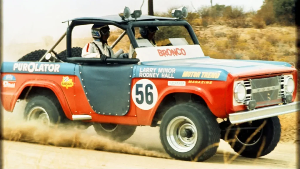 Posteriormente, el ganador de la Indy 500, Parnelli Jones, condujo un Bronco modificado de 1970 conocido como “Big Oly” a la victoria en la carrera Mexicana Baja 1000 en 1971 y 1972.